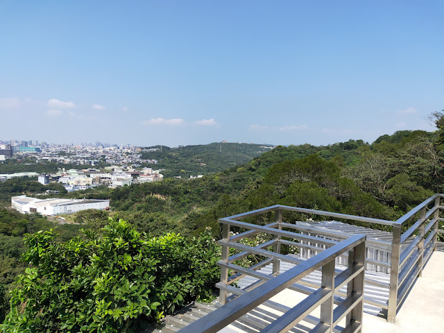 在努力向上一些,就能到達鶯歌石,這個大平台上,規畫得相當的好,可以倚欄遠眺鶯歌市區,至於那聞名鼎鼎的鶯歌石就在一旁,灰白的岩塊突兀地聳立在這平台一旁,若非有告示牌在一旁,大叔真的很難意會"鶯哥"的神韻在哪裡?